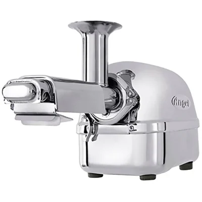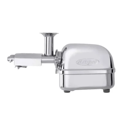 Der Angel Juicer 5500 basiert auf dem erfolgreichen Prinzip der Zwillingspresskolben und besteht fast komplett aus Edelstahl. Der Angel Juicer Entsafter verarbeitet sowohl hartes Pressgut (Karotten, Rote Beete etc.), weiches Pressgut (Ananas, Orangen, Tomaten etc.) als auch Chlorophyllhaltiges (Weizengras, Kräuter, Salate, Spinat und Sprossen). Die Saftausbeute ist hoch. Der Entsaftungs-Vorsatz des Angel Juicers besteht aus nur 4 Teilen.